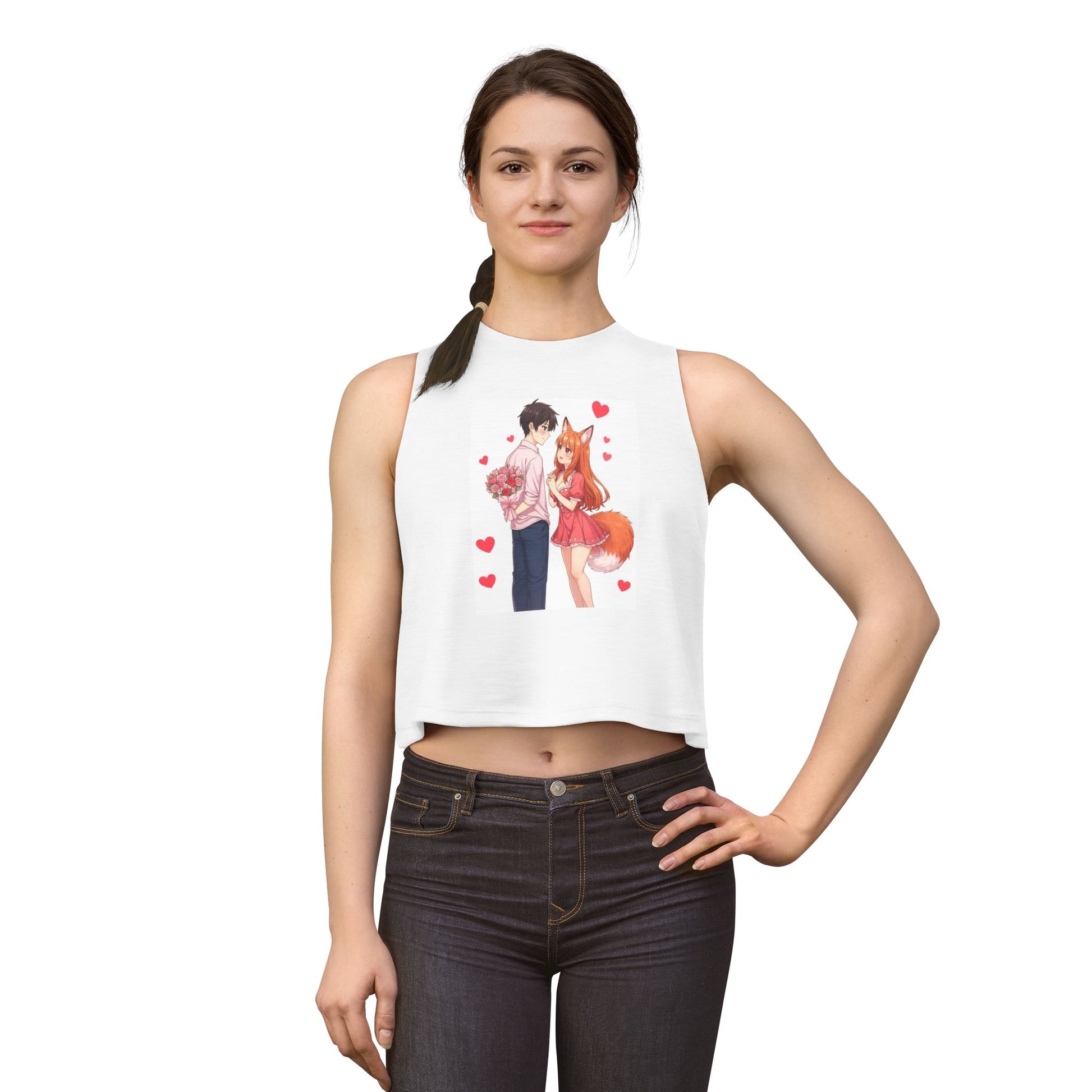 Cute Anime Couple Valentine Crop Top | Fox Girl Romance Fantasy Shirt