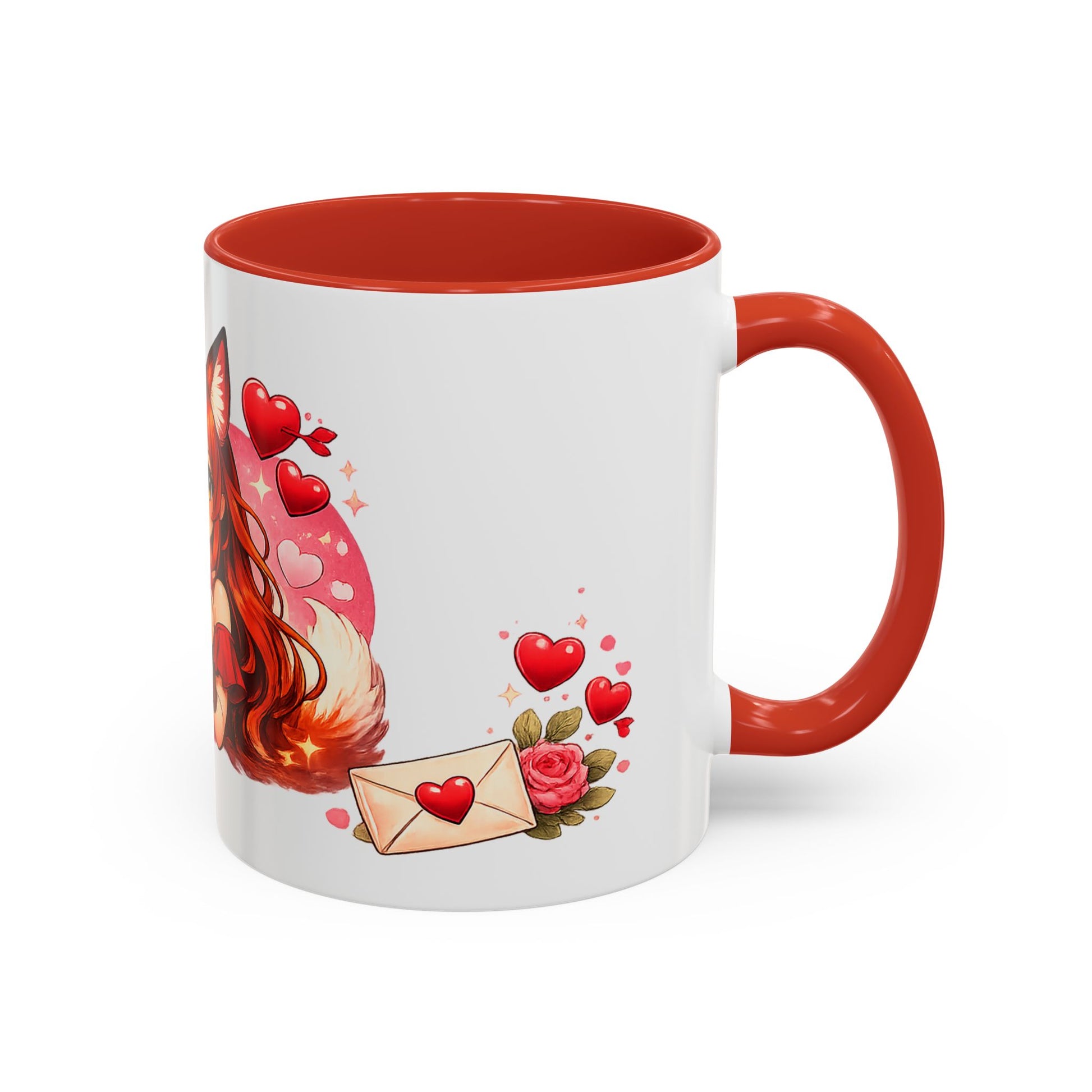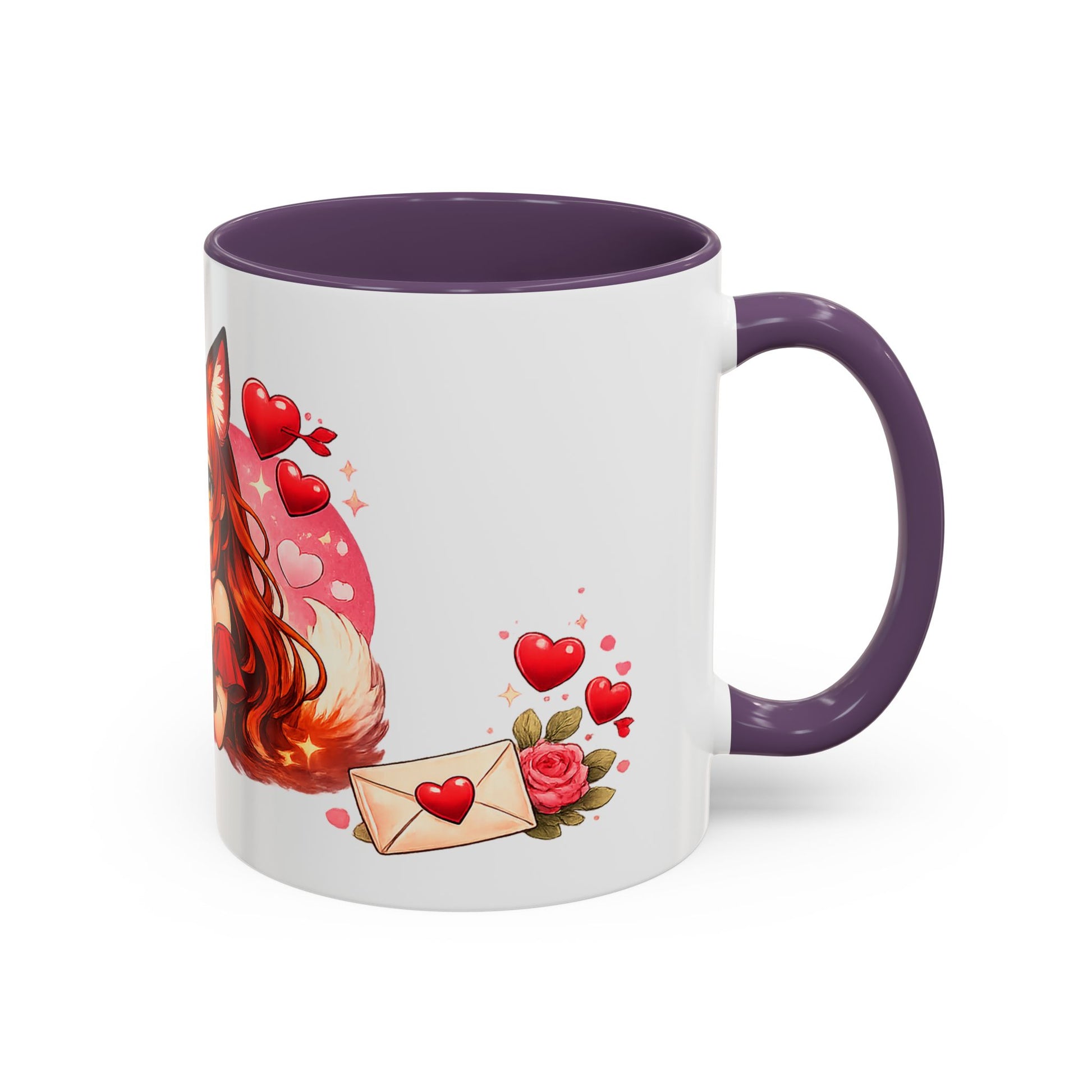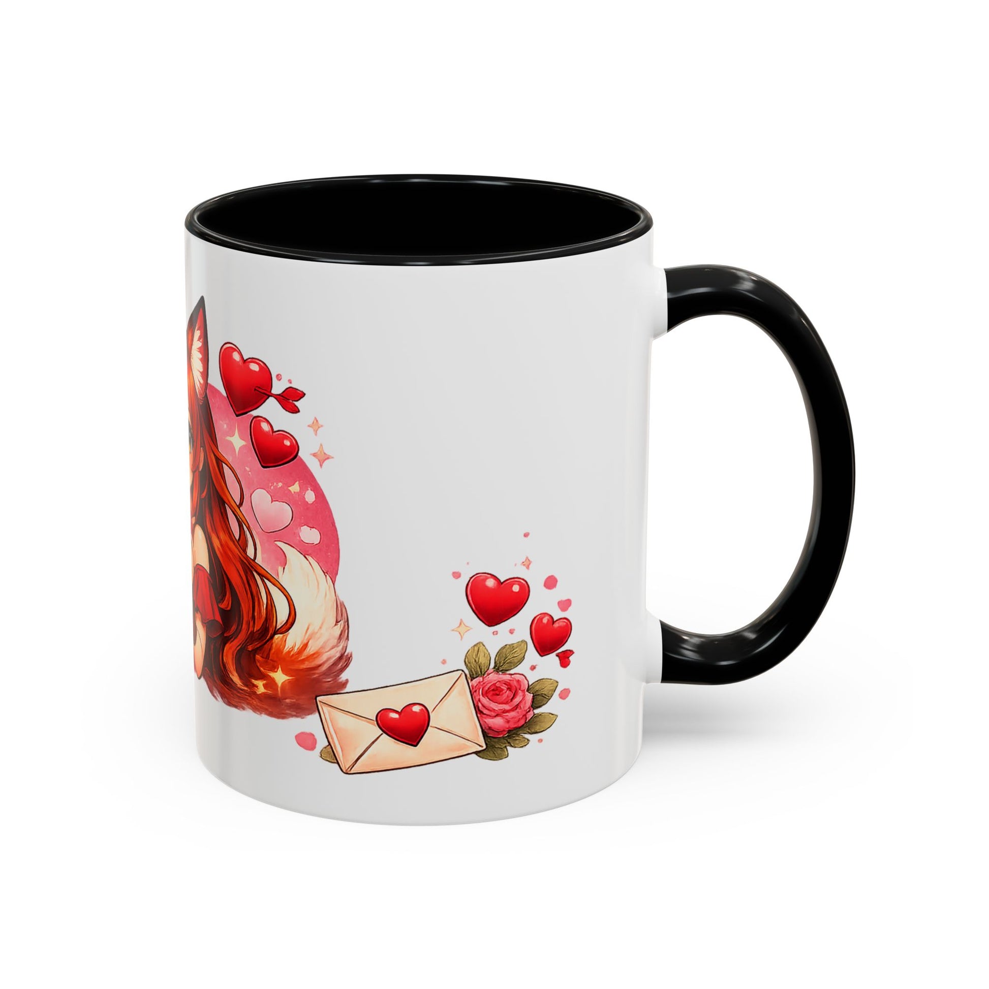 Foxy Valentine Accent Coffee Mug | Cute Anime Fox Girl Love Design