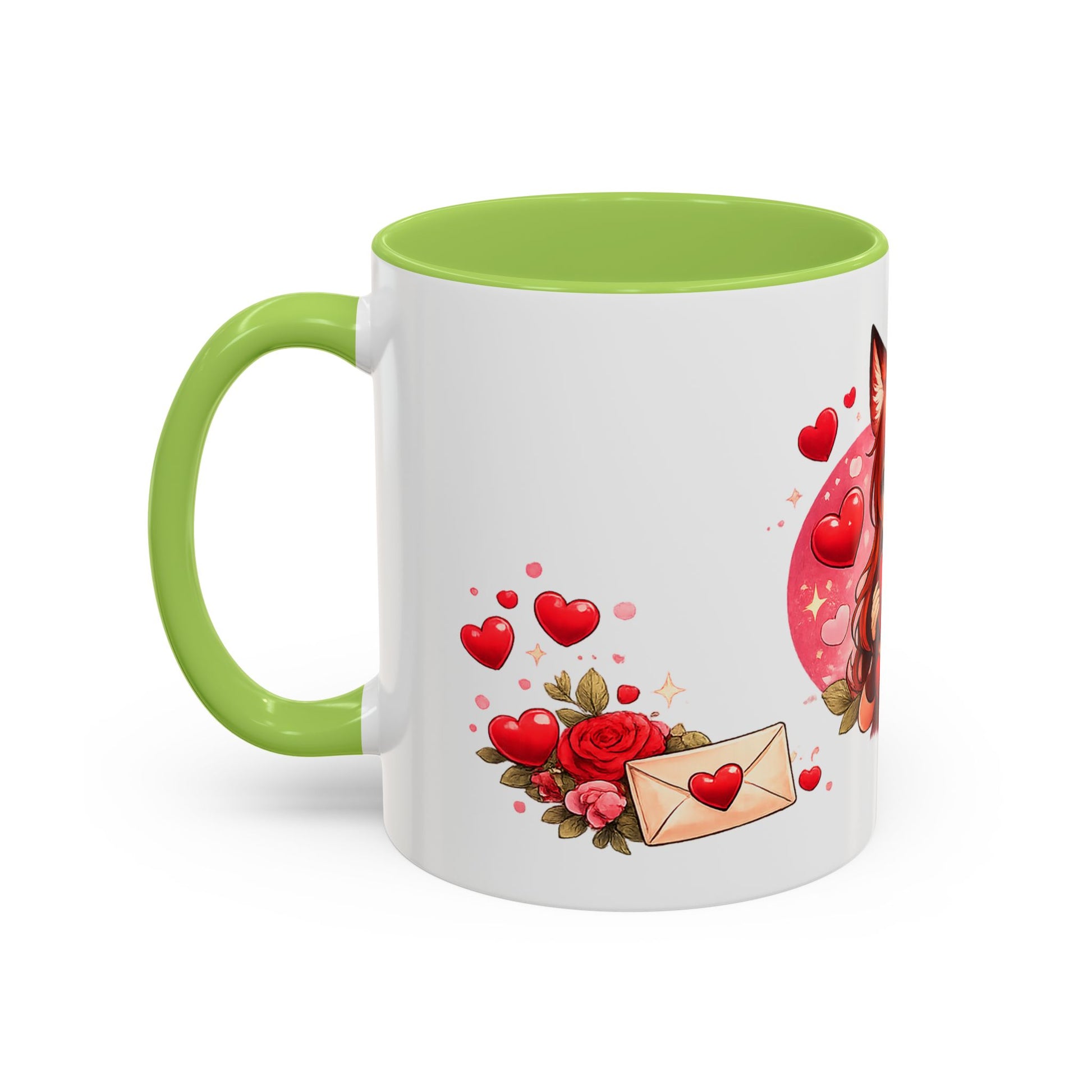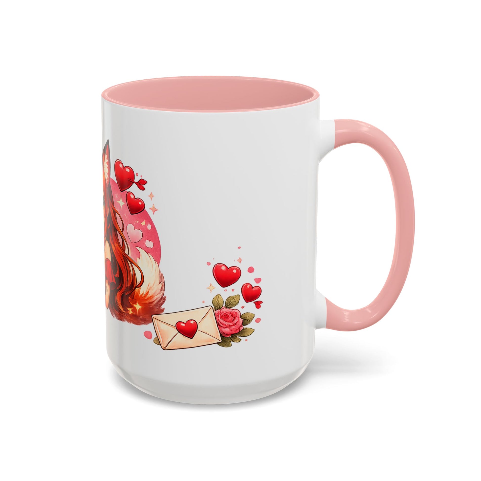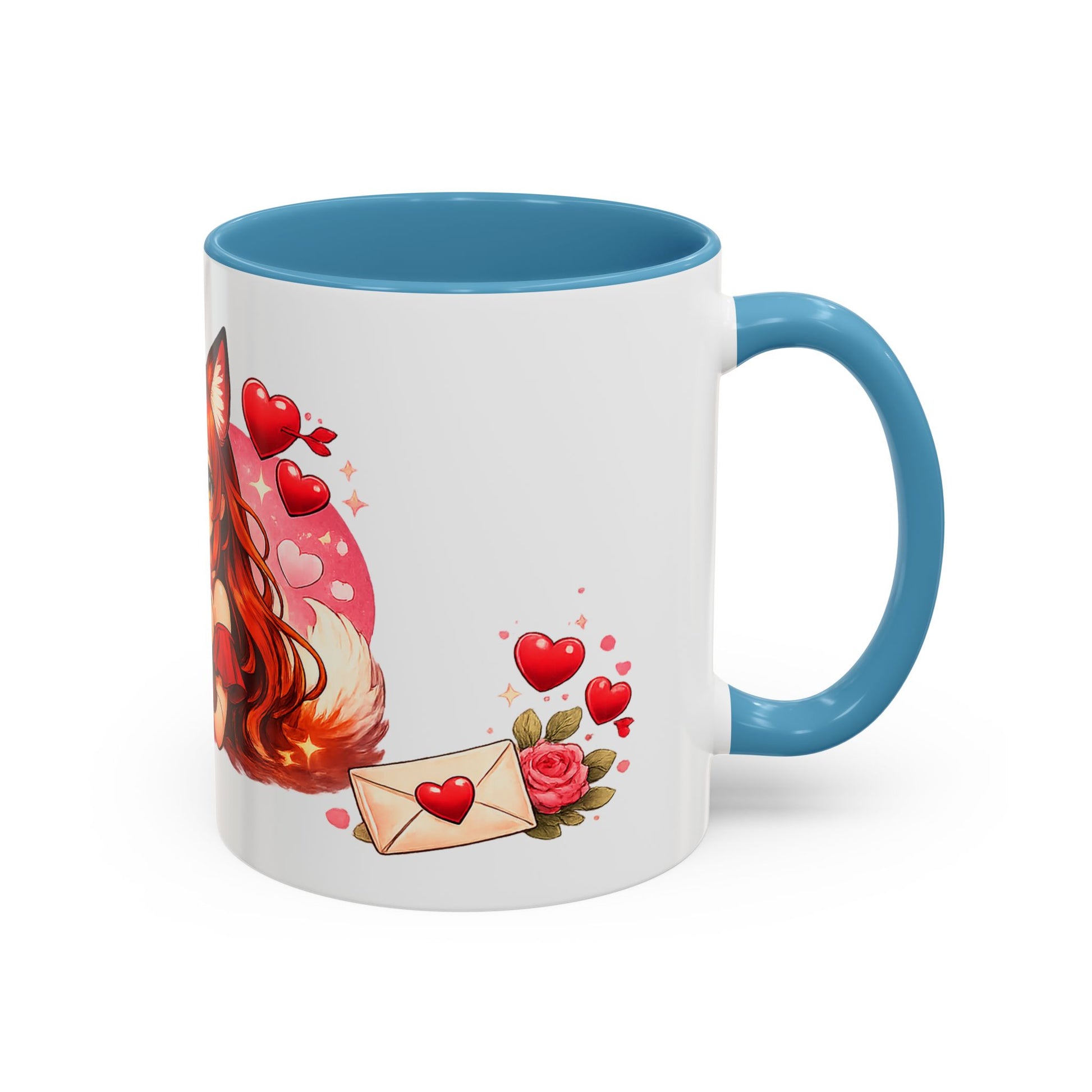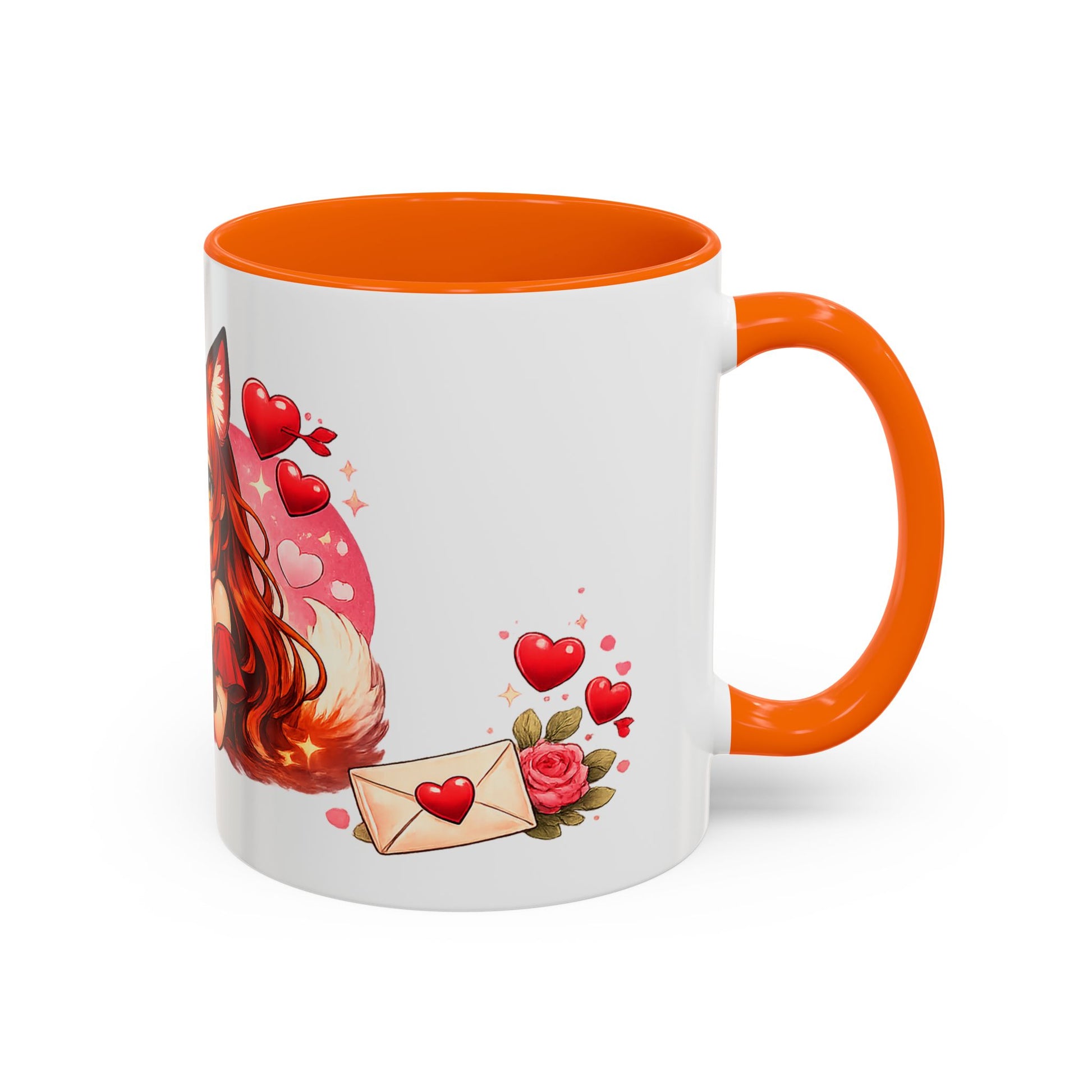 Foxy Valentine Accent Coffee Mug | Cute Anime Fox Girl Love Design
