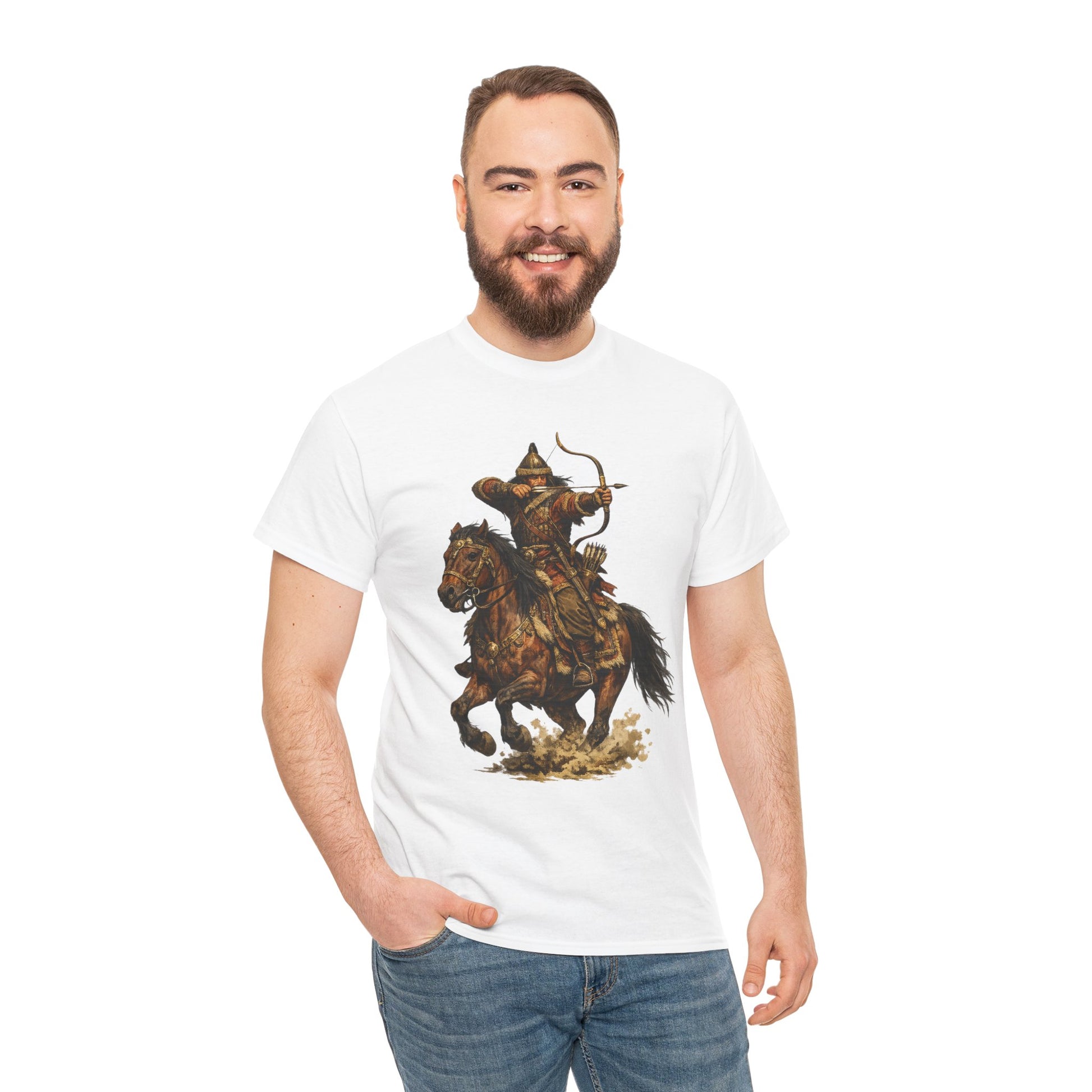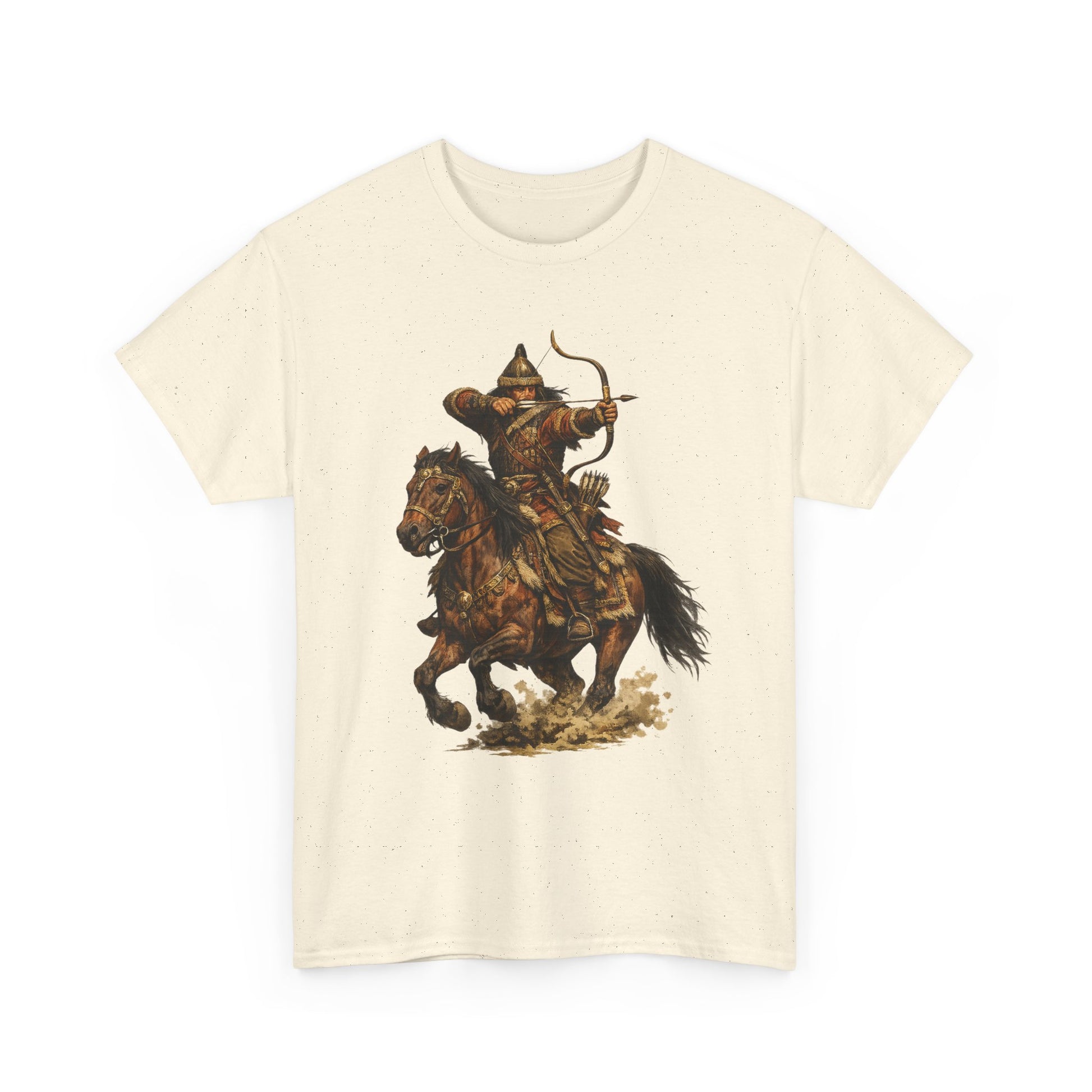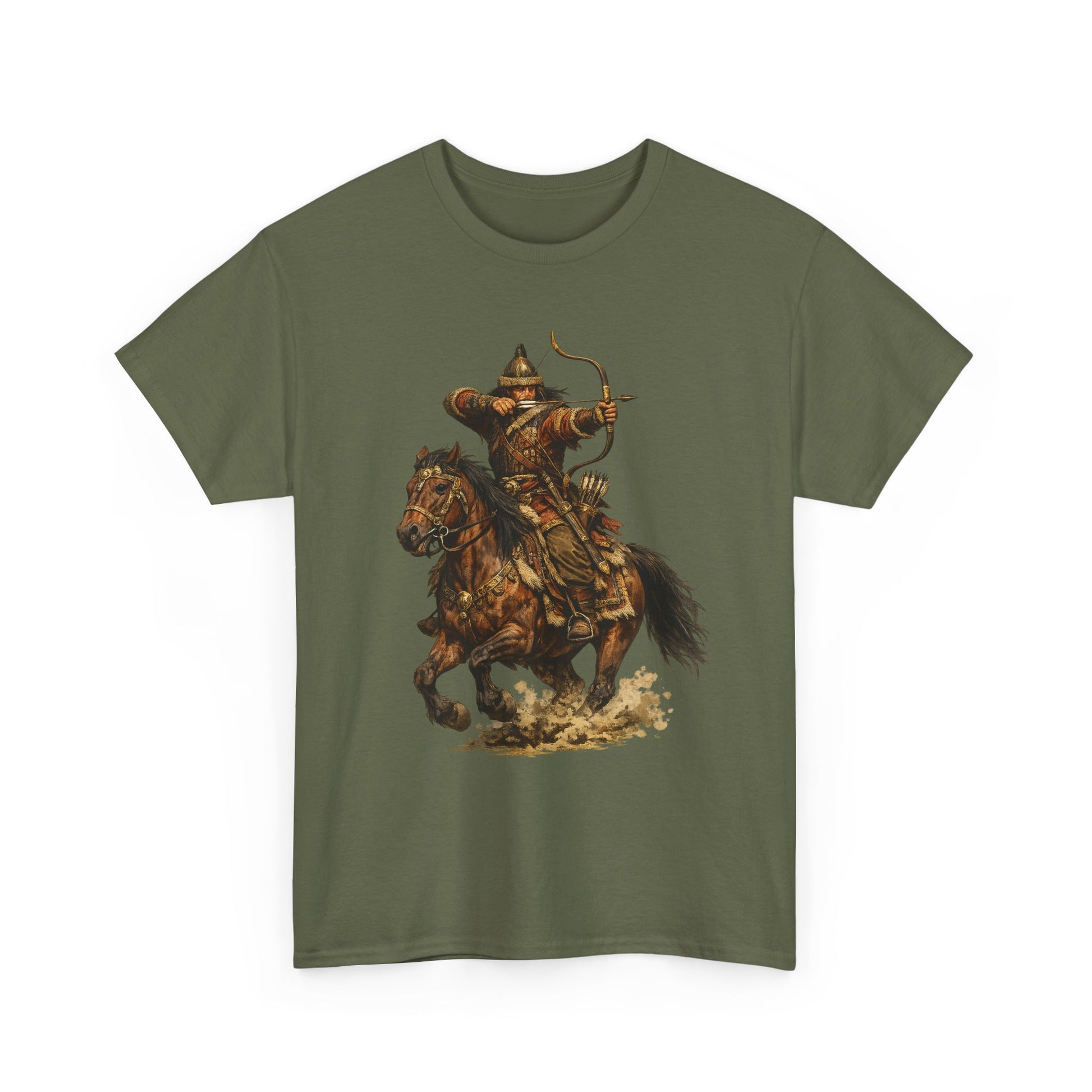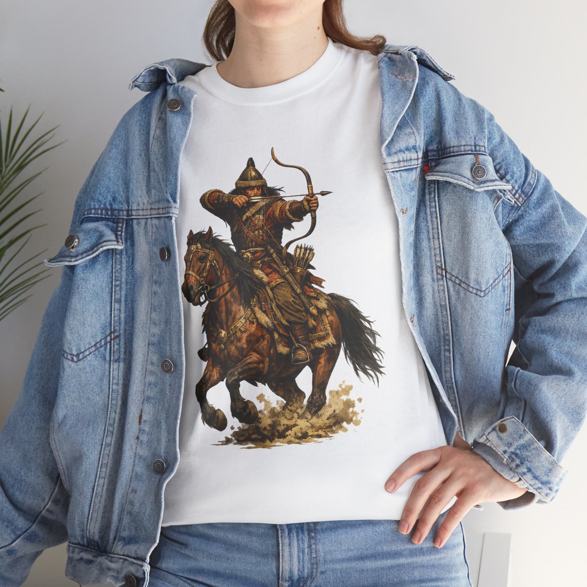 This powerful t-shirt features a Scythian horse archer, master of mounted archery and symbol of freedom, strength, and survival.