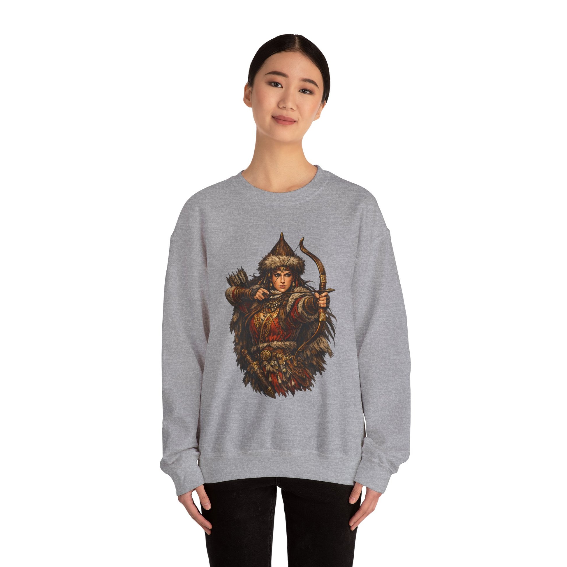 Scythian Archer Warrior Sweatshirt | Ancient Hungarian Nomad Female Bow Hunter Crewneck